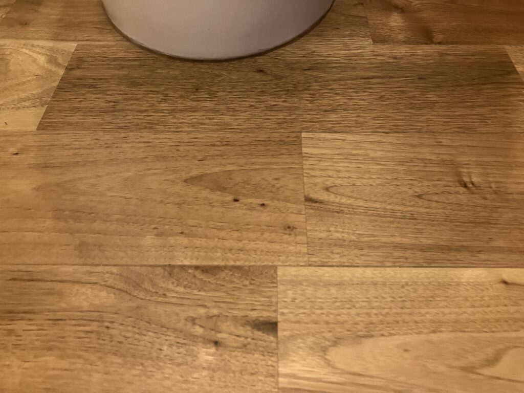 水濡れに強い材質の床材もいくつか調べてみました。フロアタイル、クッションフロア、コルク… どれもしっくりきませんでした。どこかの床材をクルミ材ではない別のものにするとなると、どこからその素材にするのか、境界線も気になりました。