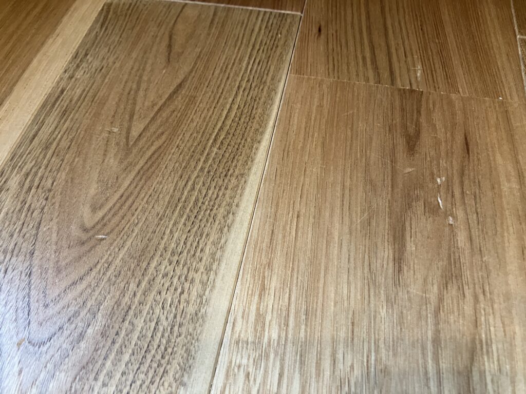 無垢床のメリットでもある調湿作用は、無垢材が水分を吸収可能であるという特性により起こります。そのため、無垢床が濡れている状態を放置して、無垢材が水分を吸収・排出すると同時に膨張や収縮が起こり、床が反ったり隙間ができたりしてしまうのです。