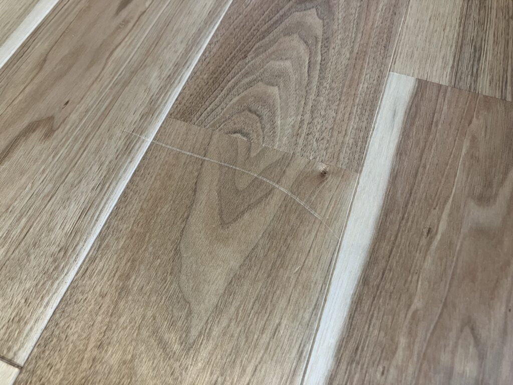 日々、クルミ材の柔らかい質感のおかげで快適に過ごしています。でも、そのメリットが、傷つきやすさというデメリットにも。もちろんそれはわかっていたことです。