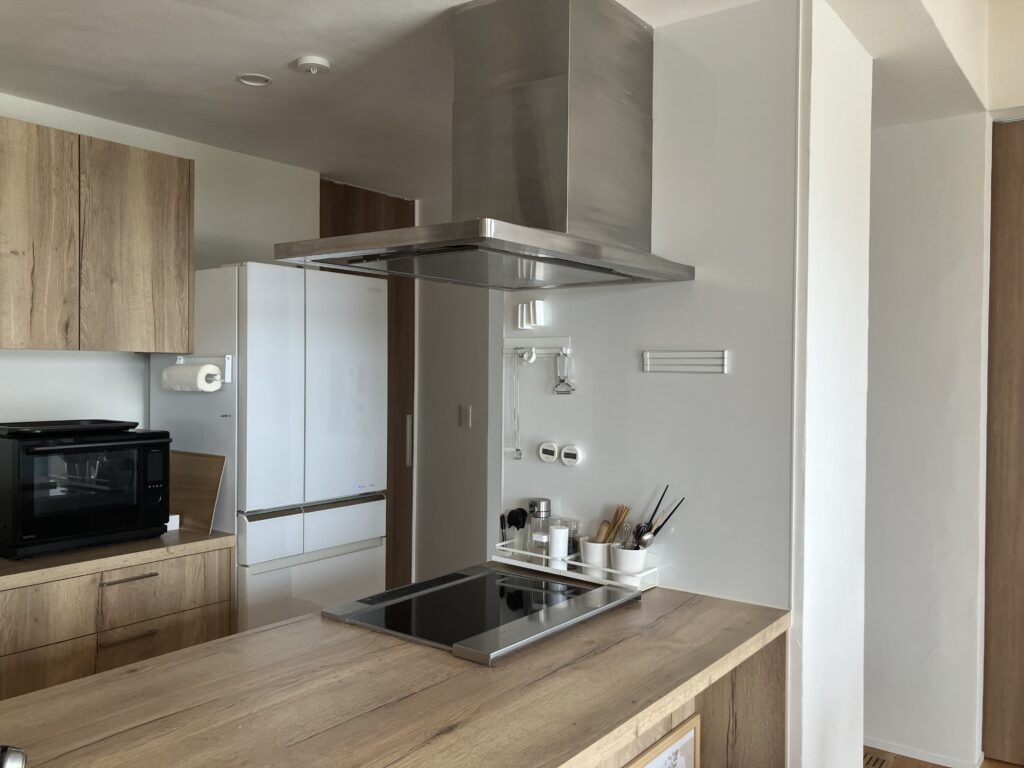 生活していて感じることは、ブレンダーを使うような調理の時には、やっぱり不便!!カウンターの後ろ側にある棚の壁にコンセントがあるのでそこから電源をとって使用しているのですが、そこで刻んだりした食材を、カウンターキッチンの方に移動しなければなりません。ちょっと動線的にイマイチで食材をこぼしそうになることも… カウンター側にあれば、使ったブレンダーもサッとシンクに入れることができて、もっとスムーズに作業できるのになぁ、と思う場面が多くあります。
