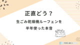 パントリーの棚にもコンセントを設置しました。ここは、家づくりの段階で、どんな家電を置くか、全然計画をできていなかったので、本当になんとなくで位置を決めました。が、ちょうどいい高さにあったので、ルーフェン(生ごみ乾燥機)を設置しています。