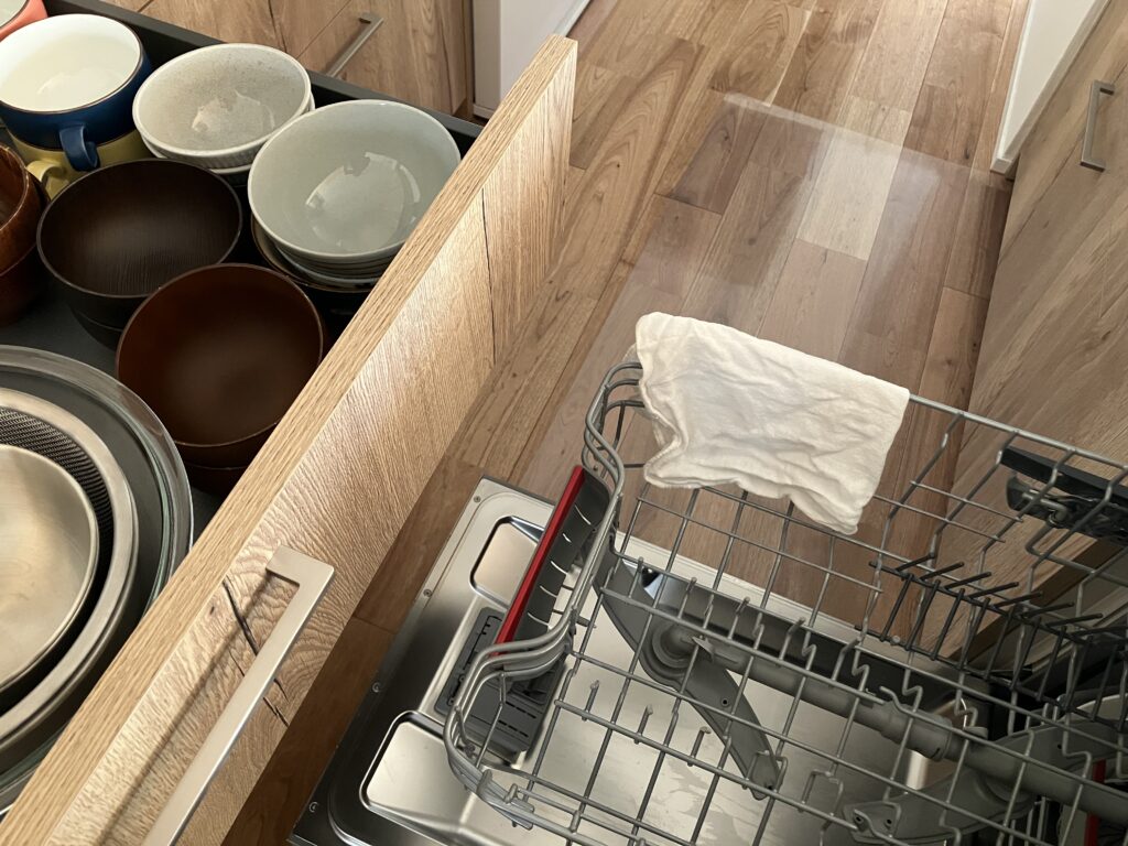 我が家のキッチンはBOSCHの食洗機。大容量なのが魅力ですが、その分扉のサイズも大きい…