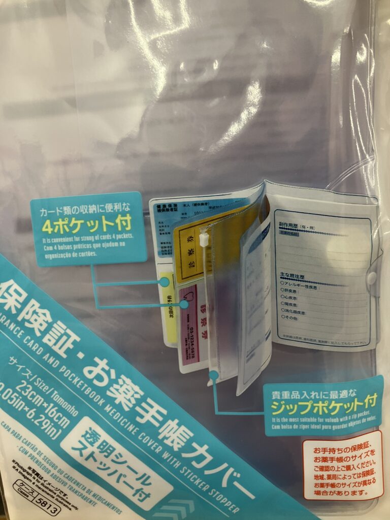 いろいろ探して、DAISOの保険証・お薬手帳カバーを見つけました