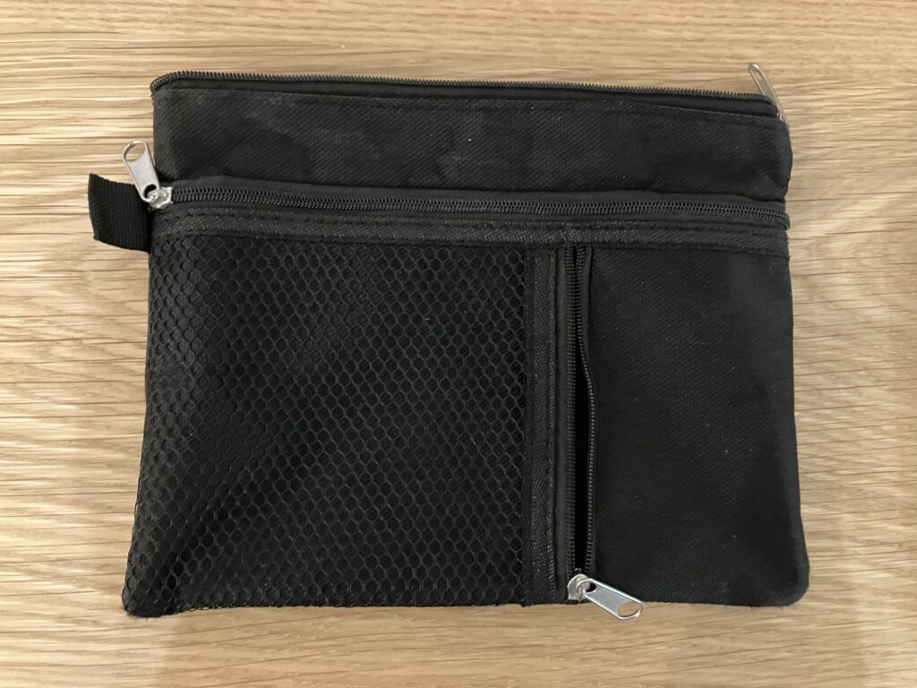 - 外ポケット付きポーチにボールペンも入れて、急な記入も慌てない